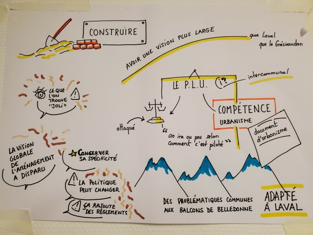 Le secteur autour du bâtiment école mairie (place des Alpes, “parcelle de Gordes” autour du city stade) concentre de nombreux services (école, cantine, mairie, salle polyvalente, aires de jeu, bibliothèque, place du marché, lieux de rencontre, parkings). Plusieurs dysfonctionnements ou demandes d’amélioration ont été relevés par les usagers de ces équipements ; les aménagements ont souvent été faits par le passé dans l’urgence ou sur des opportunités… pour se révéler pas complètement adaptés aux besoins ou pénalisants d’autres activités quelques années plus tard.